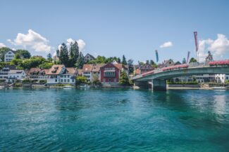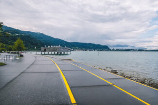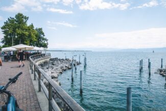 Wir verließen die Stadt in Richtung Osten und überschritten am Stadtrand auch wieder die nicht wahrnehmbare Grenze zu Deutschland. Weiter ging es für uns an der Küstenlinie in Richtung Radolfzell am Bodensee.