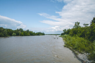 Nach rund 15km auf dem Rad, überquerten wir den Rhein zwischen Fußach und Hard, ehe wir ein Teil des Rheindeltas befuhren und später über eine kleine Holzbrücke kamen. Diese Brücke führte über den „Alter Rhein“, der gleichzeitig die natürliche Grenze zur Schweiz war.
