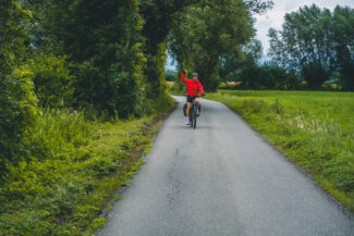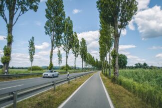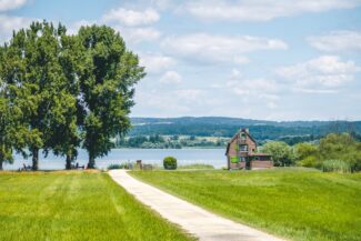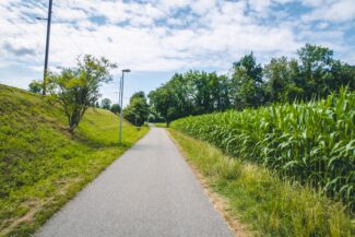 Vermutlich um die Natur am Ufer möglichst unberührt zu lassen, verlief nun der Radweg bis zum 5km weit im Landesinneren, meistens direkt entlang von Land-oder Bundesstraßen.
