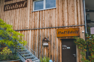 Kurz von Ludwigshafen kamen wir am Hofladen des Obstbau Müller vorbei- ein schicker kleiner und beliebter Laden mit ausschließlich ländlichen Produkten. Da die Sonne nun immer stärker schien, genehmigten wir uns, nach rund 37km im Schatten eines kleinen Baumes, eine erste Pause, ehe es für uns weiter ging.