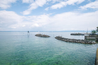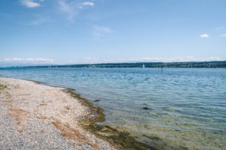 Auch wenn der Radweg überwiegend nicht in direkter Ufernähe verlief, so waren wir an den seenahen Abschnitten immer wieder fasziniert von den glasklaren und türkisen Wasser des Bodensee, das bei den nun sonnigen Wetter richtig schön zur Geltung kam.
