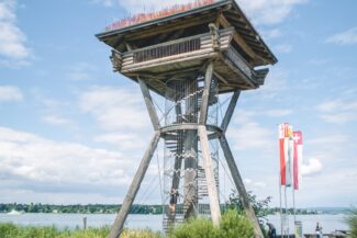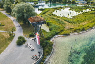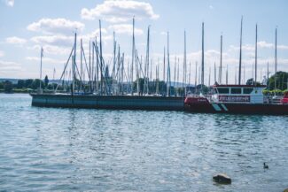 Wir gelangten schließlich zu einer größeren Parkanlage, die sich in der Nähe des Kreuzlinger Hafens befand. Nach einen kleinen Abstecher zum Hafen, beschlossen wir zum großen Aussichtturm zu laufen, um dort noch eine Pause zu machen und vielleicht mal eine kleine Abkühlung im See zu nehmen.