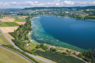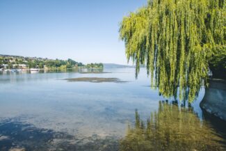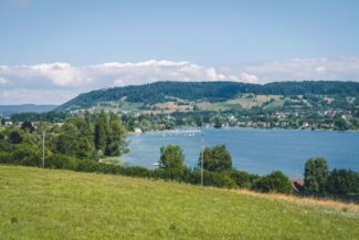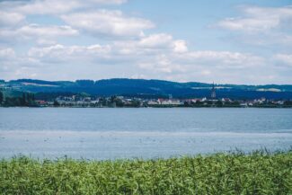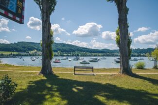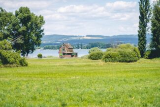 Die Bebauung mit Ortschaften war nach Stein am Rhein überschaubar: Hier lag nicht alles dicht an dicht wie bisher, sondern schön aufgelockert. Vorbei ging es an Strandbädern, kleinen Häfen und wir durchquerten große Wiesenflächen- überwiegend auf asphaltierten Radwegen oder abschnittweise auch auf gut zu fahrenden Feldwegen.