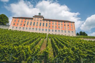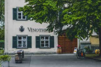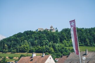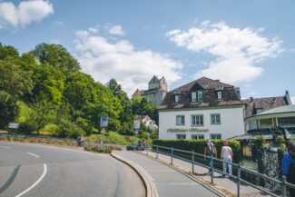 Beim Durchfahren von Meersburg wird die Verbundenheit mit Wein deutlich: Viele Weinstuben reihen sich aneinander, am Ortsende thront das Staatsweingut Meersburg über einen der vielen Weinberge, die und nun für einige Zeit nicht von der Seite weichen sollten.
