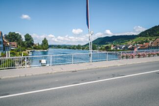 Nach rund 5 weiteren Kilometern und einen nicht freiwilligen Abstecher zum Bahnhof von Stein am Rhein, bedingt durch die manchmal irreführende Radwegbeschilderung, erreichten wir schließlich die Rheinbrücke, von der man einen tollen Blick auf das so blaue Wasser des Rheins und auf die alte Stadt hatte. Zwischenziel erreicht.
