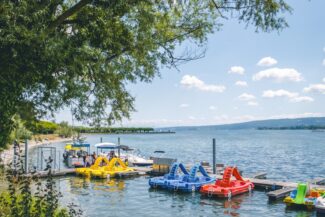 Während die Schweizer Seeseite leider mit recht wenigen Einkehrmöglichkeiten in Erinnerung bleibt, so kann das nördliche Ufer mit seinen Weinbergen, ideal in Südhanglage, vielen Hofläden und entsprechend mehr Gastronomie punkten. Da merkte man deutlich, das mehr der Fokus auf den Tourismus gelegt wird, als in der Schweiz.