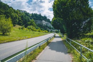 Der Weg führte nun grob an der Bundesstraße 33 und einer Bahnstrecke entlang. Ein schönes Fahren war das nun leider nur noch eingeschränkt. Wir machten schon Witze, dass nun dieser Teil des Radweges nur von Deutschen geplant werden konnte- er war nur noch zweckmäßig angelegt und hatte nicht mehr viel mit den dem schönen und der Landschaft angepassten Weg zu tun, den wir an diesen Tag schon erleben durften.