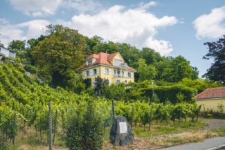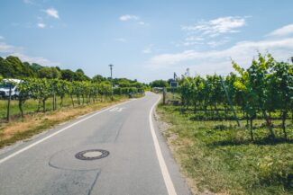 Kurz nach Ortsausgang konnten wir schon die von uns ersehnten Weinberge sehen, bei denen wir auf jeden Fall später anhalten und eine leckeren Wein trinken wollten.
