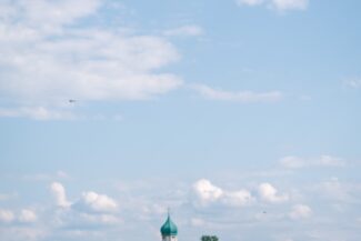 Bei Kilometer 25, oder nach knapp 1,5h, konnten wir auf einer Anhöhe bereits die höheren Gebäude von Stein am Rhein sehen. Und da dort auch wieder die letzte Möglichkeit für einen Drohnenflug war, nutzten wir gleich die Gelegenheit, machten Pause und gleichzeitig ein paar schöne Aufnahmen aus der Vorgelperspektive.