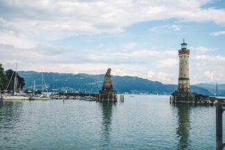 Kurz danach erreichten wir die Vororte Lindaus. Mit dem Hafen als Ziel, fuhren wir in die Stadt und auf die Insel Lindau ein. Orientierend an der Bahnlinie, die zum Bahnhof Lindau-Insel führte, kamen wir schließlich an und konnten das bekannte Bild mit dem neuen Leuchtturm und den Denkmal Bayrischer Löwe im Blick, unsere Tour offiziell beenden.