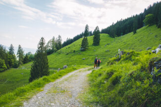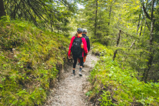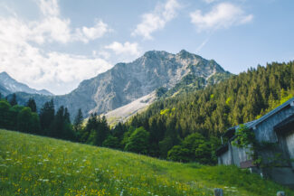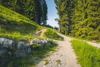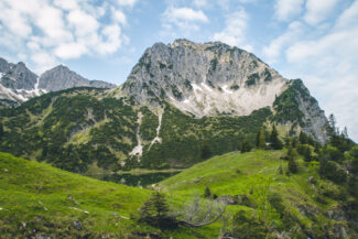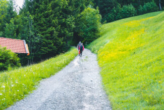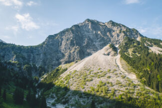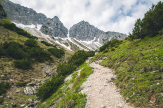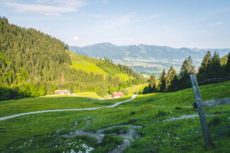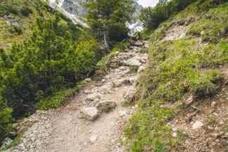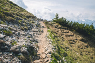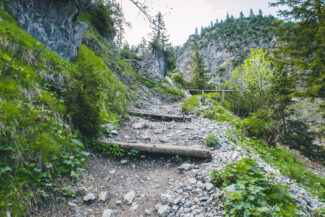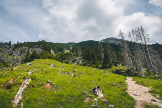 Die ersten 5 Kilometer geht es so dahin. Nach knapp 5 Kilometern, kann man die Gaisalphütte sehen, welche auf einem kleinen Hügel vor einem liegt. Diese lassen wir am frühen Morgen jedoch einfach „links liegen“ und gehen auf den deutlich schmaleren, aber auch etwas steileren Pfad in Richtung Gaisalpsee.