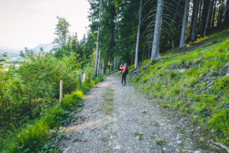 Die Tour beginnt in unserem Fall an dem Parkbereich der Audi Skiarena. Dort bewegen wir uns immer dem Hauptweg nach auf den sogenannten „Wallraffweg“. Dieser ist leicht ansteigend und gut zu gehen, da es sich im Allgemeinen um einen angenehm breiten, geschotterten Waldweg handelt.