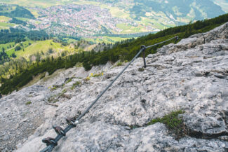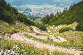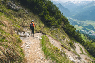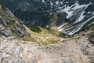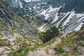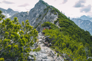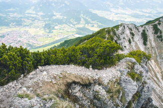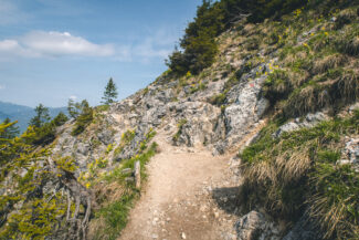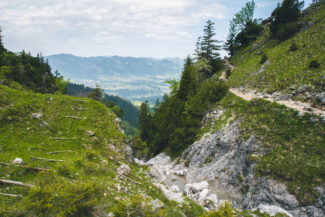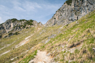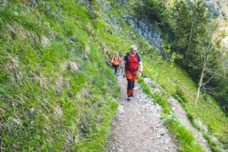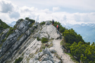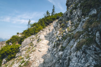 Auf den schmalen Pfad zum Gaisalphorn gibt es einige Stellen, an denen es sehr abwärts geht - Früh starten!