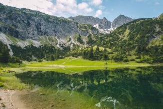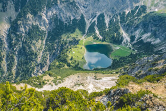 Im Gaisalpsee kann man baden...wenn die Fische und das kalte Wasser nicht stört. - Am Faltenbachtobel abwärts gehen!