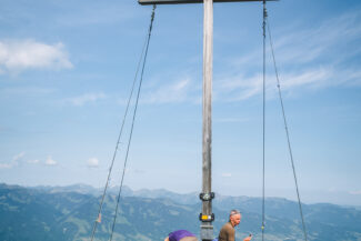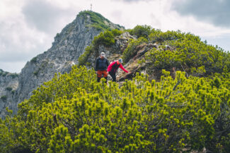 Nach insgesamt dann 9,80 Kilometern sind wir am Ziel, dem Gipfel des Rubihorn. Eine wundervolle Aussicht auf Oberstdorf, den Grünten, die Voralpenwelt und in Richtung Nebelhorn. Dort lohnt sich auf jeden Fall eine rast mit einer zünftigen Brotzeit am Gipfel.