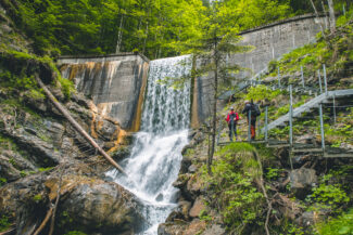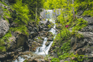 Nach insgesamt 7,5 Kilometern kann man einen wundervollen Blick über den Gaisalpwasserfall werfen.