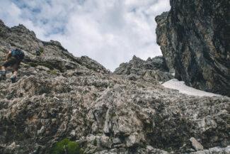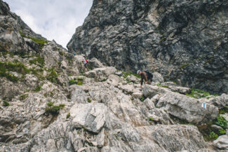 Nach knapp 9 Kilometern ging es dann an den Aufstieg. Hierzu legten wir dann auch unsere Helme an. Wir fühlten uns beim Aufstieg durch die Scharte dadurch wesentlich sicherer.