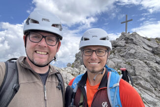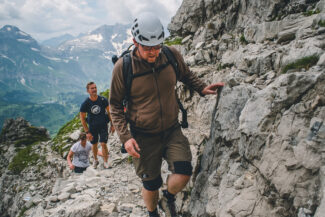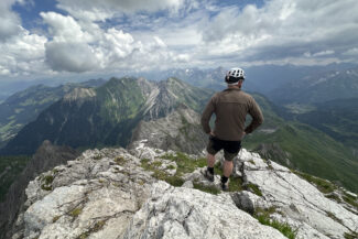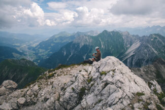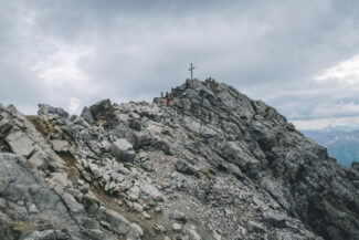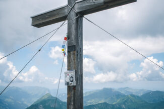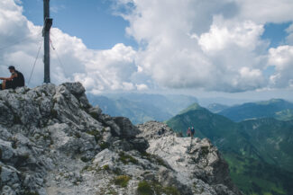 Es war eine Menge los, vom Alpinisten bis hin zum klassischen Birkenstock-Touristen. Nach knapp 11 Kilometern erreichten wir das Gipfelkreuz des großen Widdersteins. Was für eine Aussicht, einfach irre. Wir teilten uns den Gipfel zu diesem Zeitpunkt mit ungefähr 10 anderen Wanderern.