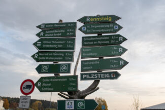 Das verwirrte mich zur Zeit der Wanderung und auch heute noch. Zur geografischen Einordnung: Der Rennsteig verläuft nicht nur im Thüringer Wald, sondern auch im Thüringer Schiefergebirge, in der wir da schon waren.