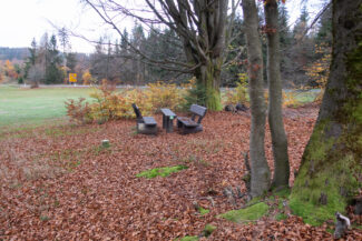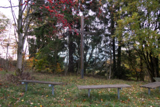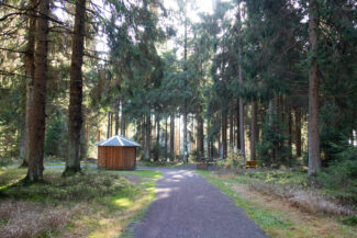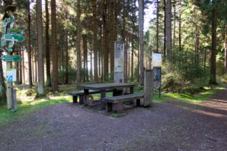 Kurz nach den höchsten Punkt der Umgebung, den Sandberg, war auf der linken Seite ein Rastplatz schön eingerichtet worden, von dem man einen weiten Blick über das Schwarza-Tal hat.