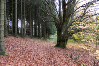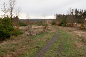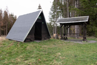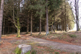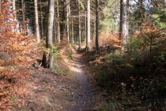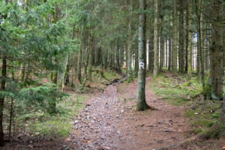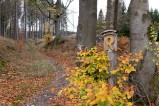 Für uns ging es nun an die erste größere Steigung dieser Etappe, die an einen Buchenwald und an der ersten Einkehrmöglichkeit, der Triniusbaude (leider auch geschlossen), begann.