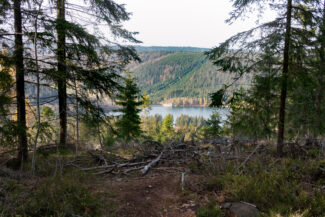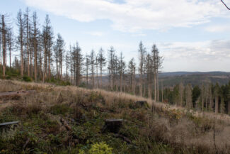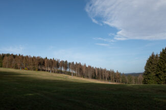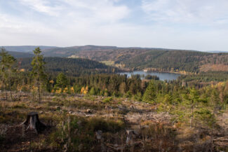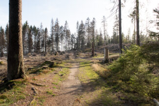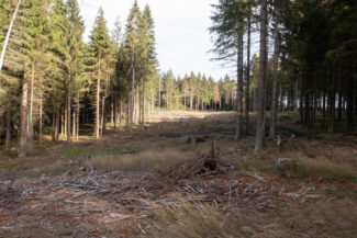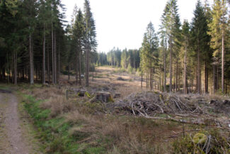 Kurze Zeit später, öffnete sich der Wald wieder und gab, linkerhand, eine große gerodete Waldfläche frei, die anscheinend Opfer des Borkenkäfers geworden ist.