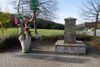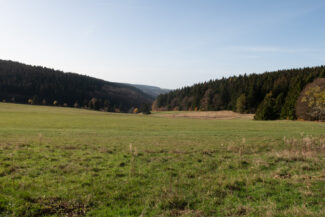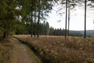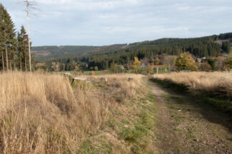 Nach rund 1,5km Weg, waren wir an der höchsten Stelle angelangt und blickten auf die Ortschaft Steinheid, den zweithöchsten Ort Thüringens.