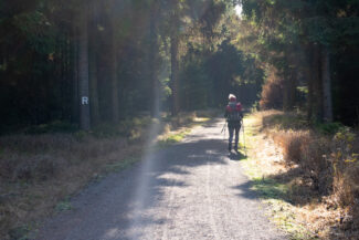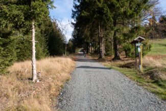 Die Wege rund um Masserberg sind, natürlich auch den Reha-Gästen geschuldet, sehr gut ausgebaut und bestehen aus gut zu laufenden, mit sehr feinen Kies versetzten, Waldboden. Im Vergleich zum Aufstieg nach dem Rastplatz Schwalbenhaupt war das eine Wohltat für die Wanderfüße.