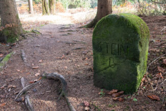 Immer an unserer Seite und in recht kurzen Abständen: die alten Grenzsteine, teilweise hunderte Jahre alt.
