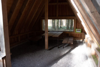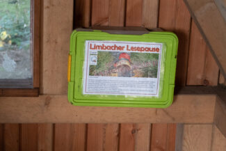 In Kahlert angekommen, fiel uns gleich der schöne Pausenplatz auf, der auf einer Grünfläche innerhalb einer Kreuzung stand. Groß und massiv, aus Steinen und wuchtigen Hölzern.