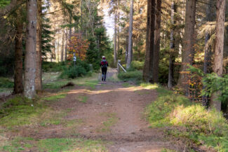 Nach weiteren rund 3 Kilometern, abwechselnd durch Waldabschnitte und offenen Flächen, auf gut zu laufenden Rennsteig, kamen wir am Parkplatz Schwalbenhaupt an.