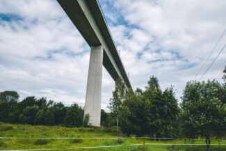Bei Mellingen überspannten 2 Brücken das kleine Tal: Eine ältere Brücke und daneben ein Neubau, der im Zuge der Erweiterung auf 6 Fahrspuren hinzukam.