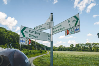 Nach der ausgiebigen Weinpause ging es für uns auf den Saaleradweg weiter. Eine bekannte Strecke, nur dass wir bislang diese immer in die andere Richtung gefahren sind. Von daher war es auch eine Premiere für uns…