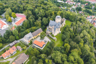 Wir ruhten uns hier aus, tranken und aßen etwas und nutzten auch hier wieder die Zeit, die Drohne über dem Schloss kreisen zu lassen, um uns zumindest von oben einen Eindruck über die Anlage zu verschaffen.