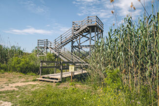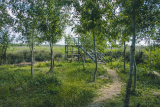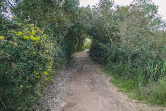 Ungefähr nach 1,3km hinter der Brücke, stand der erste Beobachtungsturm. Von hier konnte man das erste Mal einen Blick über die Landschaft bekommen, die wie ein endloser Dschungel aussah. Ganz im Hintergrund sah man schon das Tramuntana-Gebirge sehen, dessen Gipfel bis über 1400m in die Höhe ragten.
