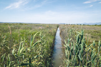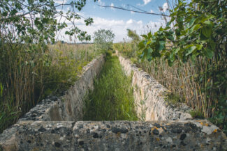 Vorbei ging es an einer alten und zerfallenen Bauernhof (?) mit seinen Anbauflächen auf der rechten Seite des Weges, während links ein betonierter Bewässerungskanal verlief, dessen ursprüngliche Aufgabe ich leider nicht erkunden konnte.
