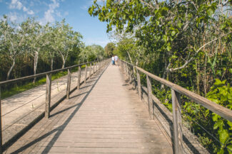 Der Park sieht, wenn man es aus Satellitensicht betrachtet, aus, als hätte hier eine Naturkatastrophe stattgefunden: Zwischen den Blau des Meeres, den verschiedenen Farben der Felder und den Hotelanlagen erscheint der Park in dunklen Braun-Grün- und Blautönen, als wäre hier Erdöl ausgetreten…