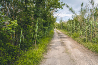 Fast im rechten Winkel verlaufend, führte der Weg nun durch eine Art Gartenlange, die vor allem zum Anbau genutzt wurden: Links und Rechts des Weges waren Felder in unterschiedlichen Größen angelegt und einige Leute machten sich fleißig daran, diese zu bestellen.