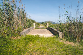 Nach rund einen Kilometer überquert man über eine kleine Brücke den Nebenkanal, der bislang auf der linken Seite sich befand.