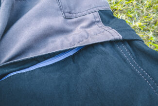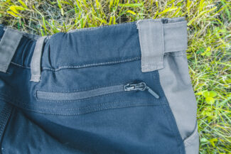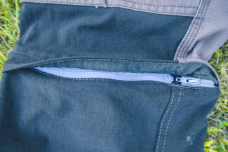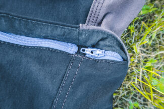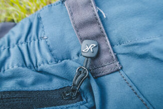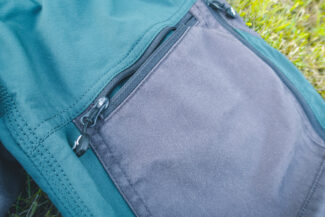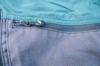 Die Nordwand Pro hat den geringsten Elastan-Anteil aller hier vorgestellten Hosen, aber gegenüber der Wander-Pants finde ich sie trotzdem elastischer. Das hohe Gewicht von über 600g lässt sich auf die zusätzlichen Reißverschlüsse im Zip-Bereich schließen.