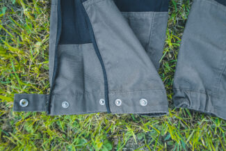 Die Hosenbeinenden sind wieder mit Druckknöpfen verstellbar und es gibt auch wieder einen Stiefelhaken.