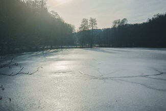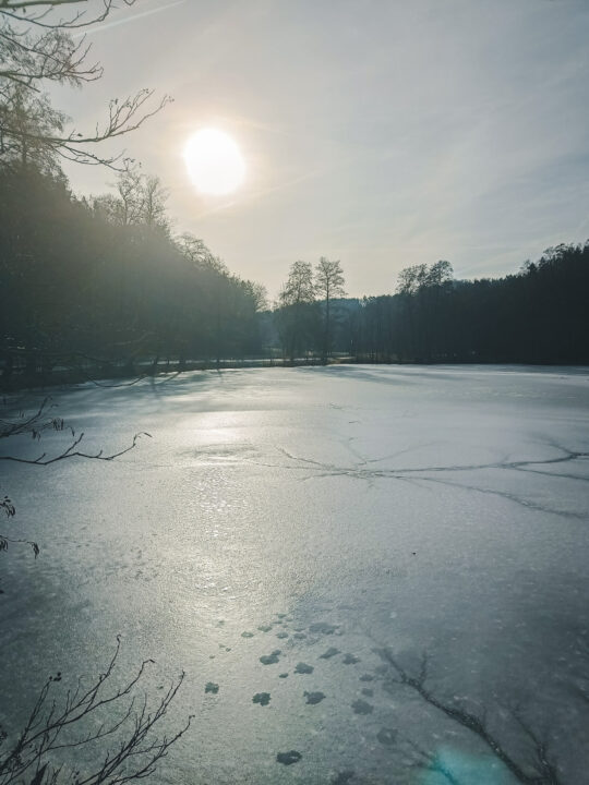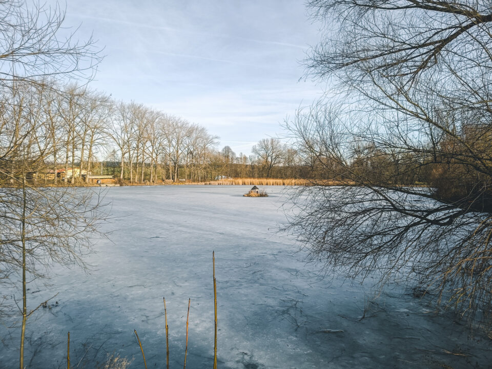 Vorbei an gefrorenen Teichen und größtenteils alleine auf der Straße unterwegs, ging es stetig leicht bergauf.