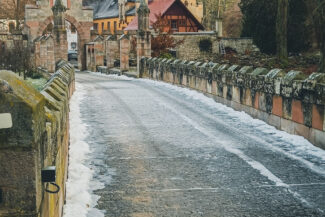 Ein Teil musste ich noch auf der Landstraße fahren, bis ich auf den, parallel verlaufenden Radweg kurz wechselte. Dort war jedoch ein Fahren wegen kompletter Vereisung nicht zu denken. Dies änderte sich zum Glück kurze Zeit später wieder und ich konnte den Rest der Strecke auf dem Fahrradweg fahren.