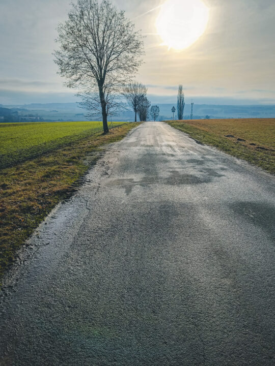 Auf den ersten Kilometern machte ich erstmal in Ruhe: Warmfahren war angesagt. Auch war ich mir unsicher, welche Stellen durch den Nachtfrost gefroren waren.