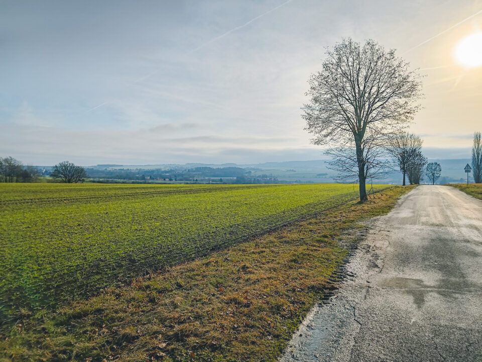 Ich verließ Wolfersdorf und sofort ging es aufwärts. Nicht sehr steil, aber immer stetig bergauf.