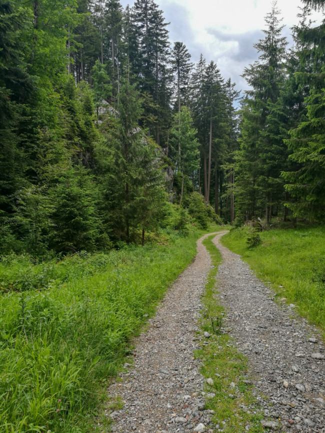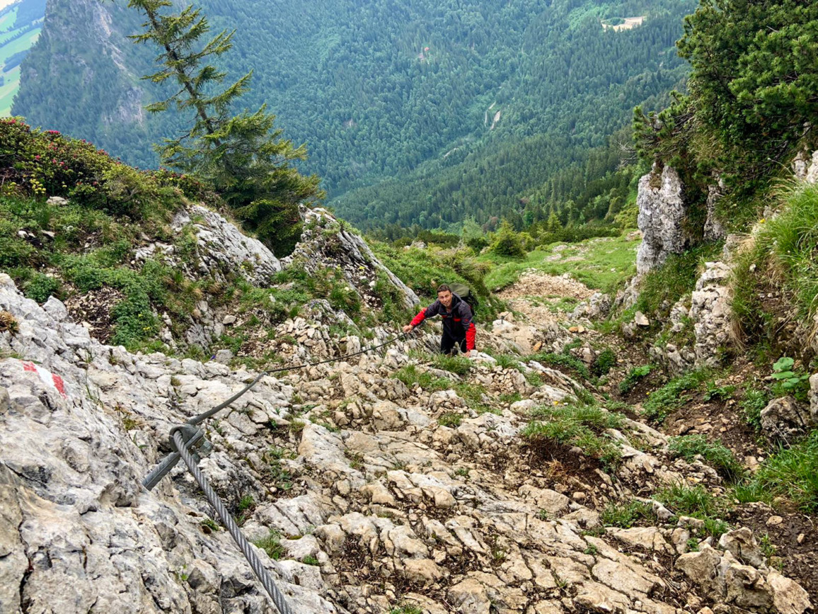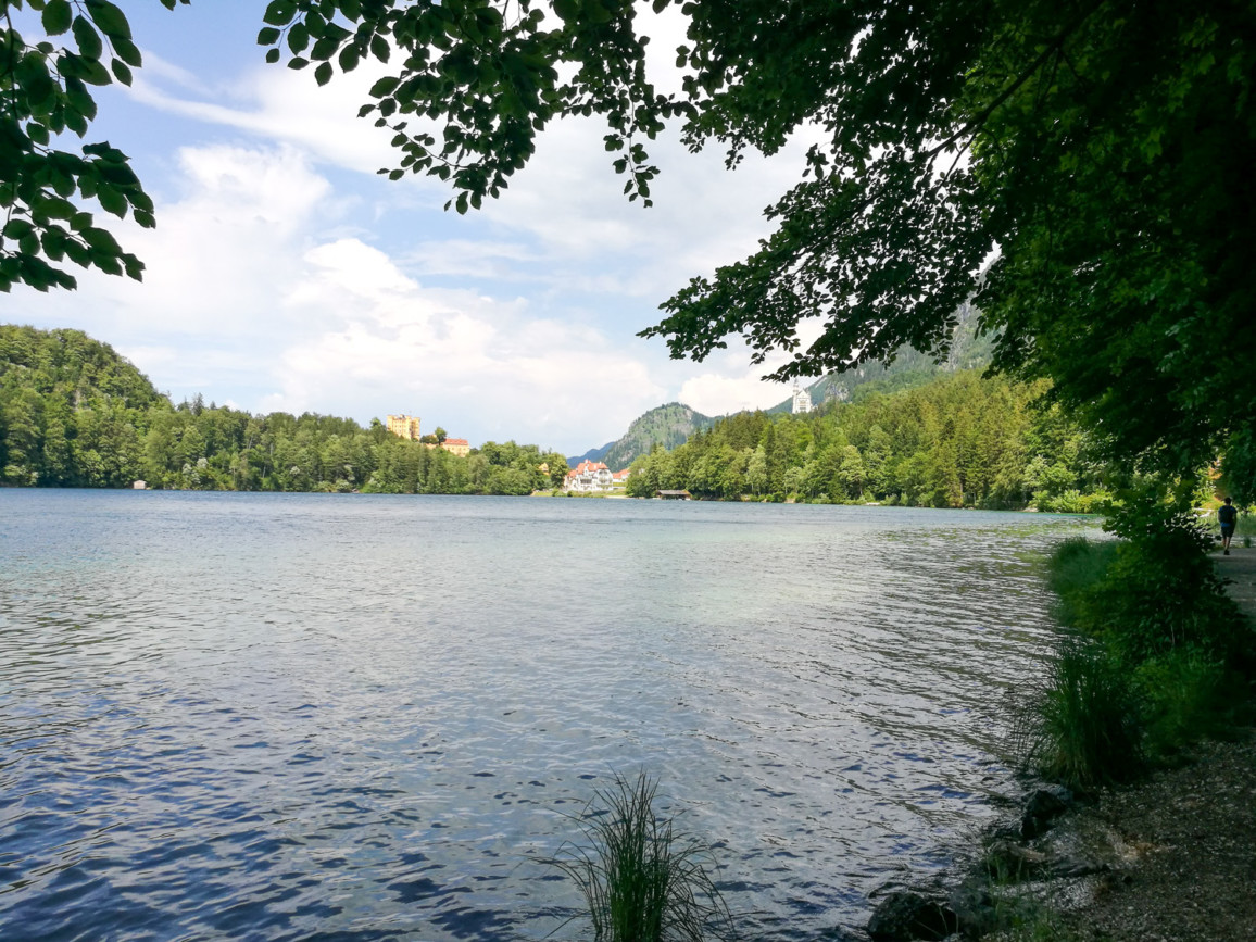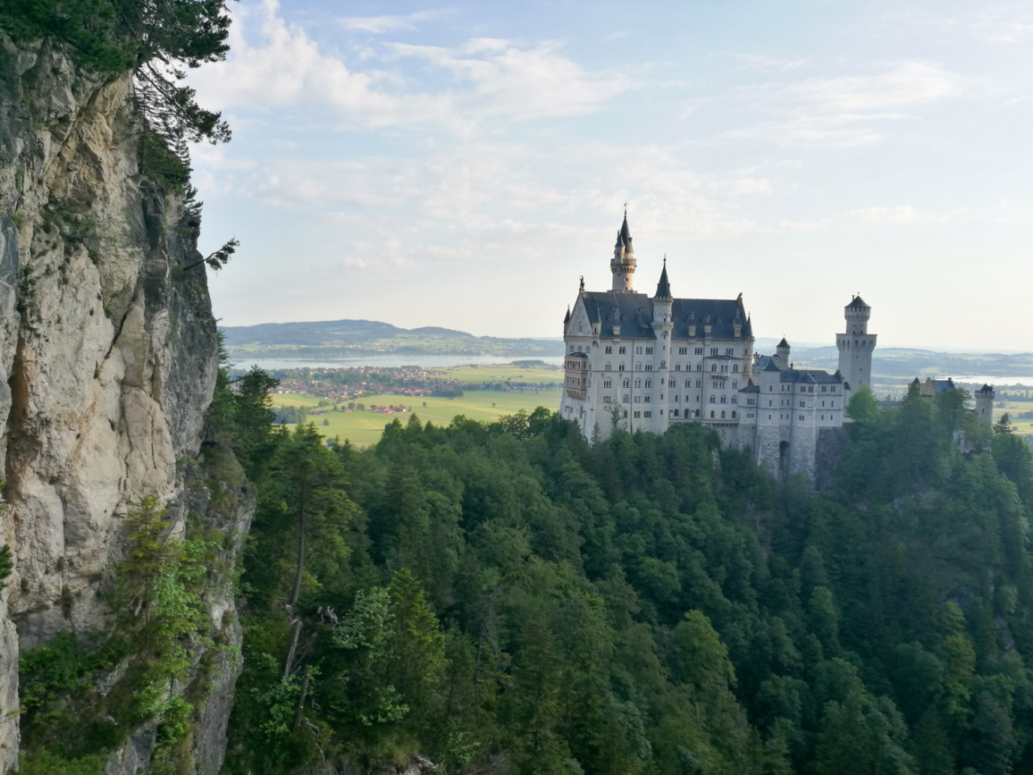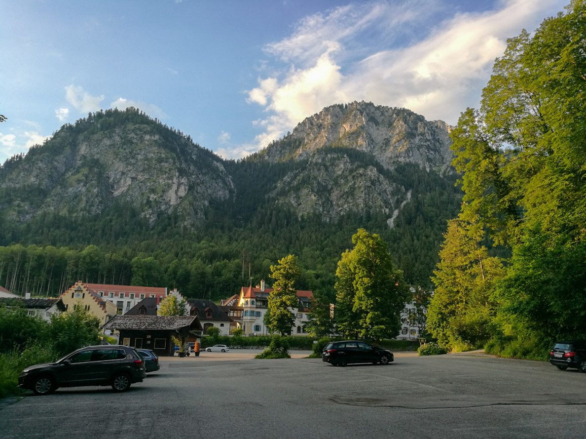 Im Tal, auf deutscher Seite, befindet sich Füssen mit seinen bekannten Schloss Neuschwanstein, dass man beim Aufstieg häufig sieht.