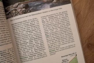 Nach einleitenden Worten folgen kurze Informationen, wie Einkehrmöglichkeiten, Verkehrsmittel, Kontaktdaten und Angaben zur Berghütte.