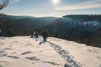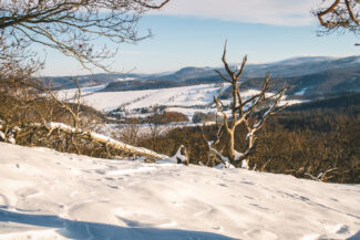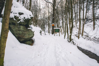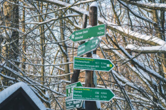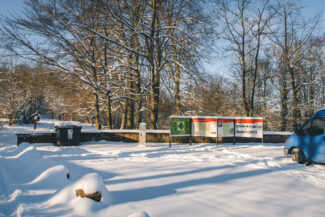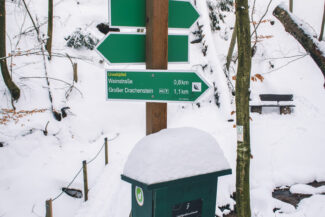 Glühwein, Tee, Kekse und andere Knabbereien wurden eingepackt, wir selbst folgten den bewährten Zwiebelprinzip, um auch schön warm zu bleiben und dann ab ins Auto. Ein wenig mehr als eine Stunde waren wir unterwegs, als wir an dem Samstagvormittag am Parkplatz „Hohe Sonne„, direkt am Rennsteig gelegen, eintrafen. Schon auf den Weg dorthin, wurde uns schnell klar, dass viele andere die gleiche Idee wie wir hatten…es waren viele Autos unterwegs, die größtenteils am nördlichen Eingang der Drachenschlucht an der Straßenseite abgestellt wurden.