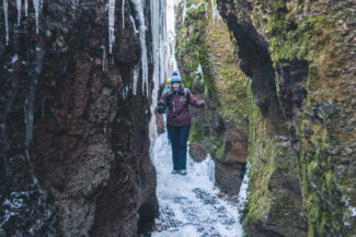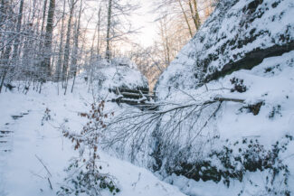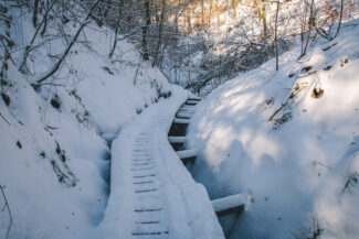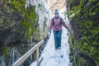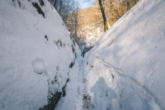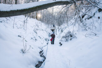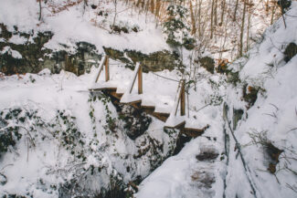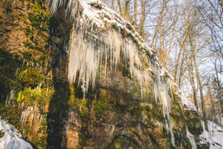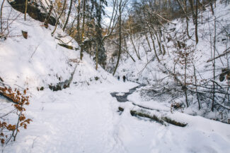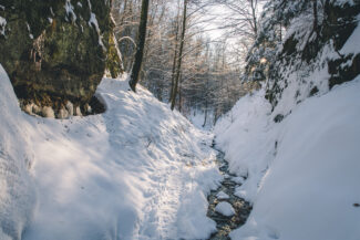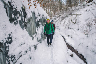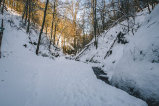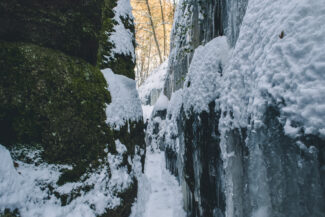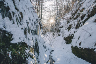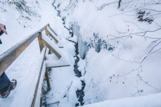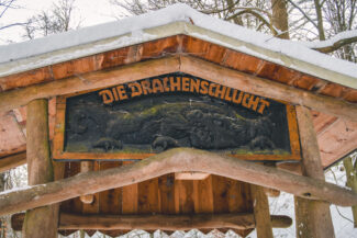 Weil man im Sommer ja immer zu Drachenschlucht kann, war das Wochenende Mitte Januar ideal: Es lag Schnee und die Temperaturen waren unter den Nullpunkt – somit waren die besten Voraussetzungen erfüllt, um eine beeindruckende Eislandschaft zu sehen, die man auf so vielen Bildern ansehen konnte, die in den sozialen Netzwerken herumgeistern.