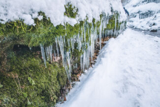 Als Naturschauspiel würde ich diese kleine Eiswelt nicht gleich bezeichnen, aber die Kombination aus eisbehangenen Felswänden, herunterhängenden Eiszapfen, den nicht gewöhnlichen Weg durch die Klamm und die schneebedeckte Landschaft, machte diese kleine Wanderung zu etwas Besonderen.